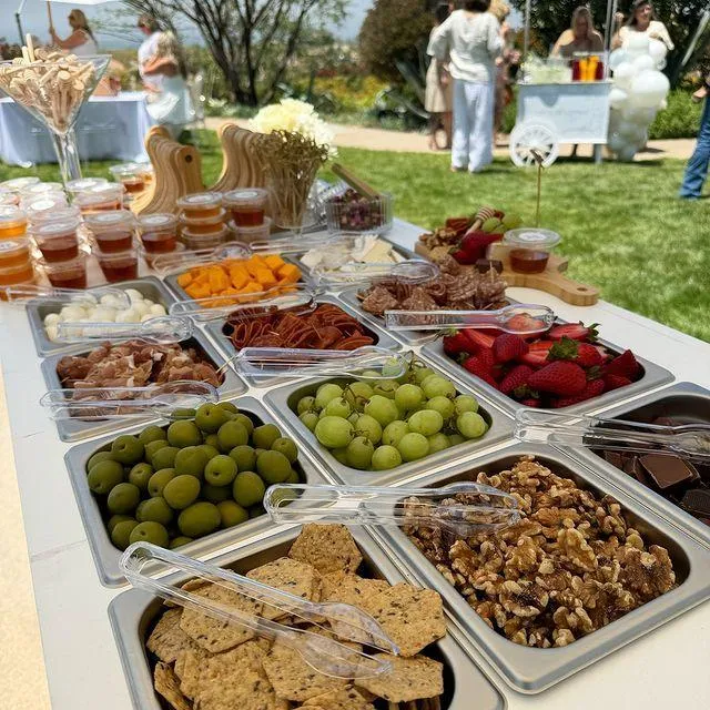 Easy roll in and set up. Our cart includes charcuterie styling, décor, utensils, eco-friendly serveware, and signage tailored to your event theme. Requirements for our set up depend on whether it's a public or private event. We can usually get set up in less than hour for most events.